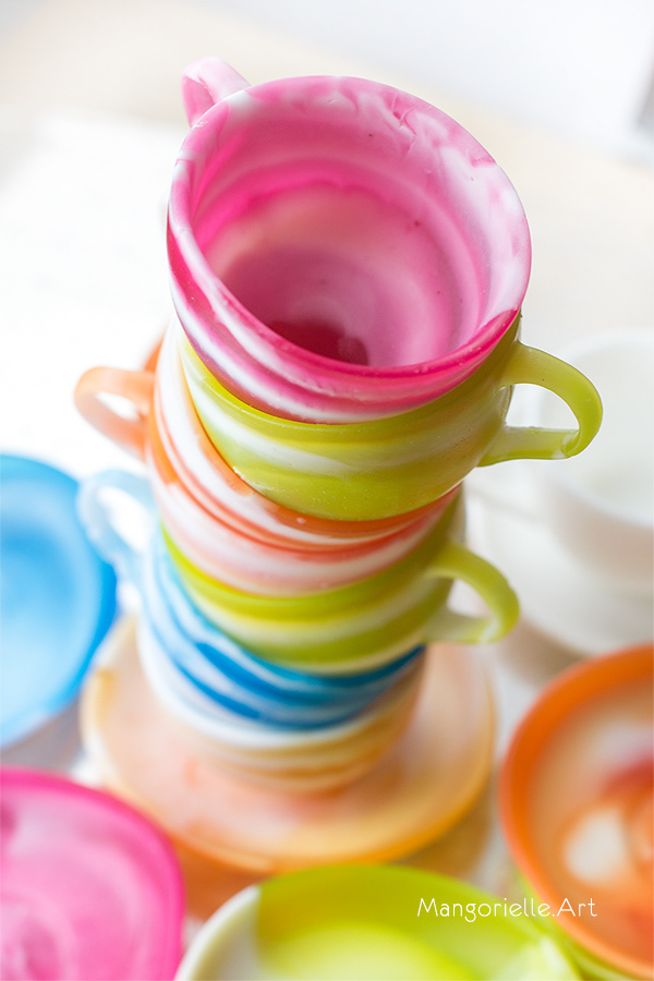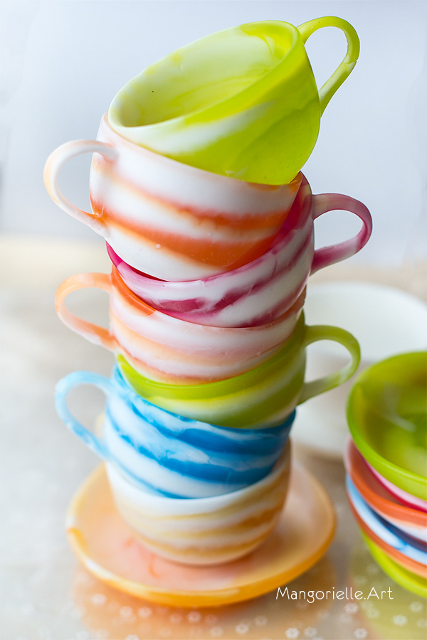 The prototype for creating the silicone mold for this set was a cup and saucer from an English tea set.
