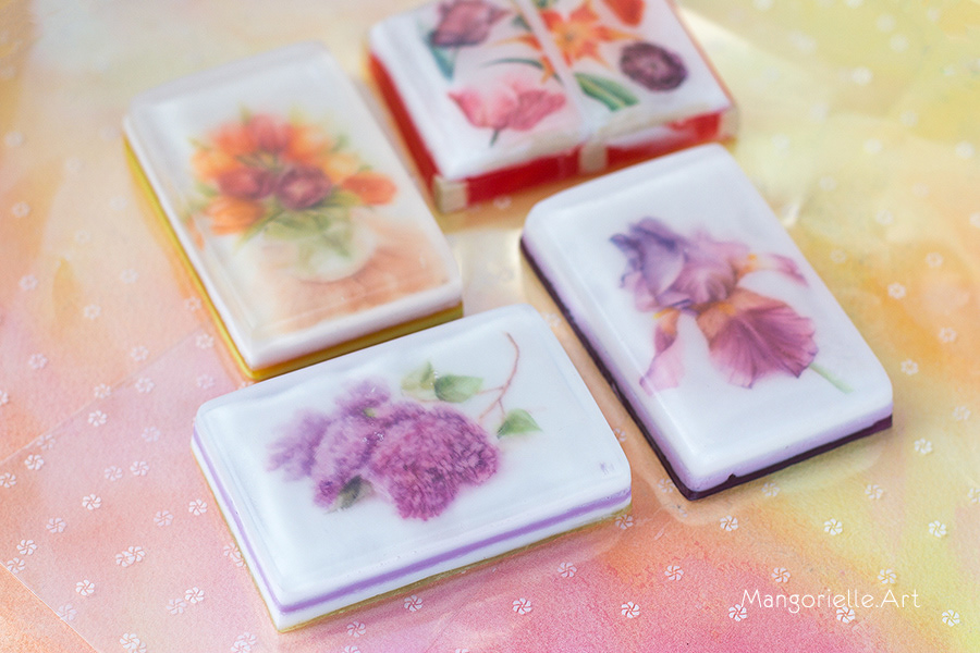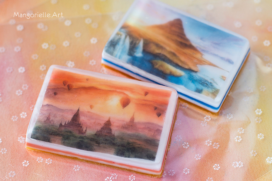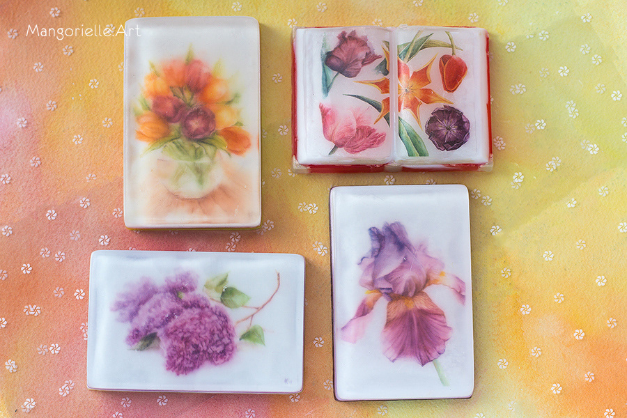 Miniature watercolor paintings in handmade soap